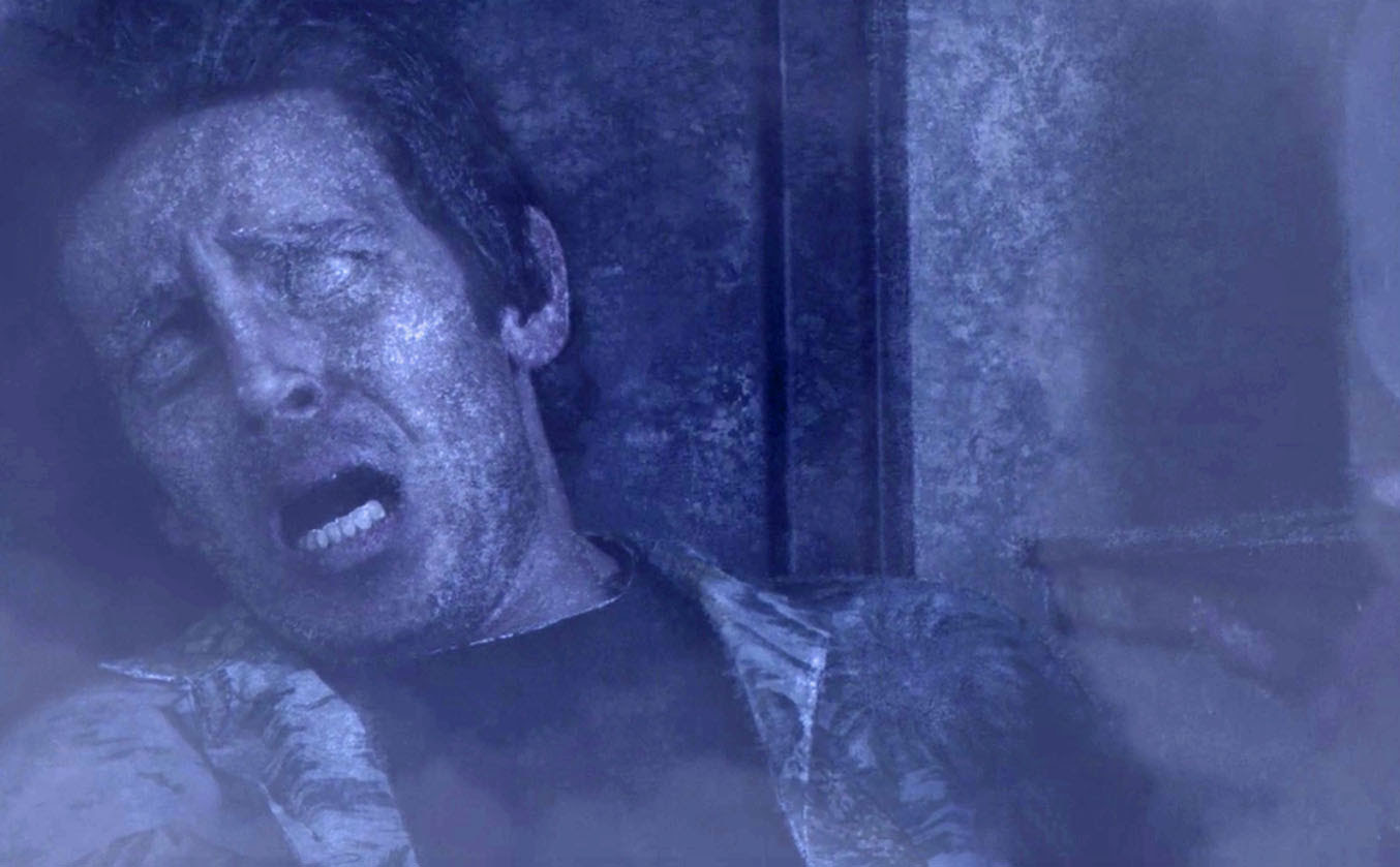 Most of the film is people looking scared at smoke that's obviously come from a rented smoke machine situated behind the camera. Smoke, I can only presume given the name of the movie isn't Smoke Blast, that's meant to actually be freezing fog.